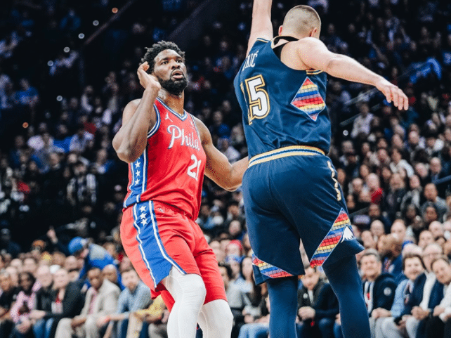 生死时刻,约基奇迎着恩比德打进不讲理投篮,76人最后一攻有暂停却不用,最终76人惜败掘金,约基奇拿到22分13篮板8助攻2盖帽2抢断,赛后恩比德和约基奇拥抱。