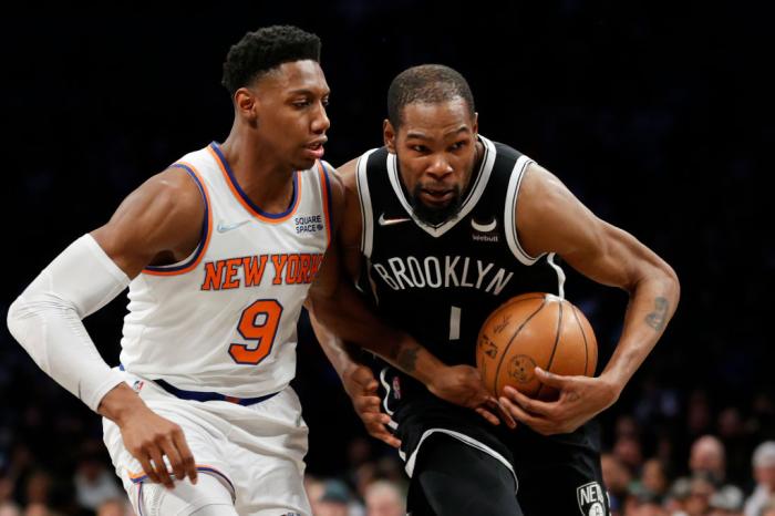 篮网主场110-107击败尼克斯,杜兰特全场出战42分钟,37投19中、三分13中4、罚球12中11狂砍53分9助攻6篮板,死神降临带队拿下纽约德比;杜兰特疯狂一战狂刷历史纪录,赛后杜兰特拥抱欧文疯狂庆祝,并且回应出战42分钟。