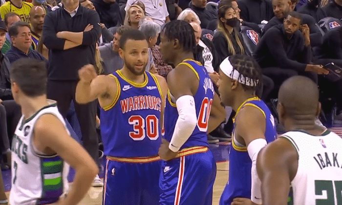 上半场的比赛开始后,两队打得比较胶着,首节比赛两队打平,第二节的比赛勇士这边的克莱迎来了大爆发,他单节命中了5记三分球,打出了自己复出以来最好的半场比赛,正是凭借着他的出色发挥,半场打完勇士领先9分,第三节的比赛,轮到普尔了,他开局连续命中三记三分球,克莱、维金斯连续命中三分球,单节比赛勇士轰下了36分,雄鹿这边更多的是依靠字母冲击内线造犯规不断追分,但是无奈今天的勇士火力太猛,三节打完雄鹿落后19分。