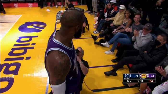 赛前,詹姆斯深情拥抱库兹马和波普,比赛正式开打,詹姆斯开场便轰进三分,空切上演霸气扣篮,先后助攻里夫斯和蒙克,第一节贡献9分4助攻;到了第二节,詹姆斯的手感依旧火热,单节4中3贡献8分,不过湖人又出现防守走神以及不够专注的情况,半场打完湖人落后7分。