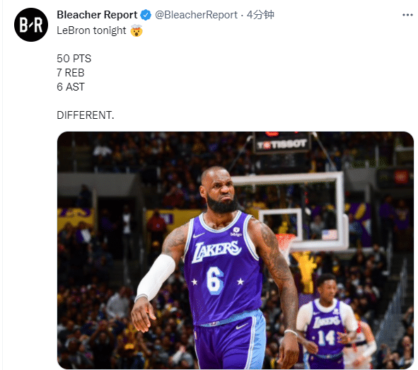 詹姆斯50分疯狂一战冲上热搜引热议,美媒露天看台晒詹姆斯今天的数据,发推:与众不同;SportsCenter发推:见证伟大;湖人官方晒照:50个汉堡又回到菜单上。