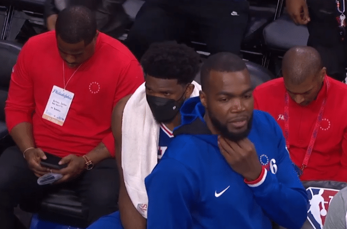 比赛结束后,哈登恩比德第一时间离场,杜兰特疑似看向76人替补席,之后和约翰逊大笑庆祝;杜兰特还和小乔丹有说有笑;赛后杜兰特接受采访,现场篮网球迷集体高呼MVP,表示:现场太安静了,听不见呼喊西蒙斯的声音。
