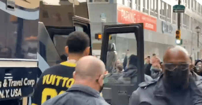 西蒙斯现身费城遭围攻!现场画面曝光,警察护送篮网大巴前往76人主场