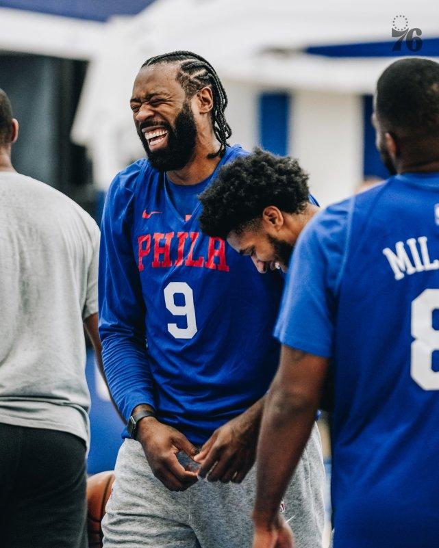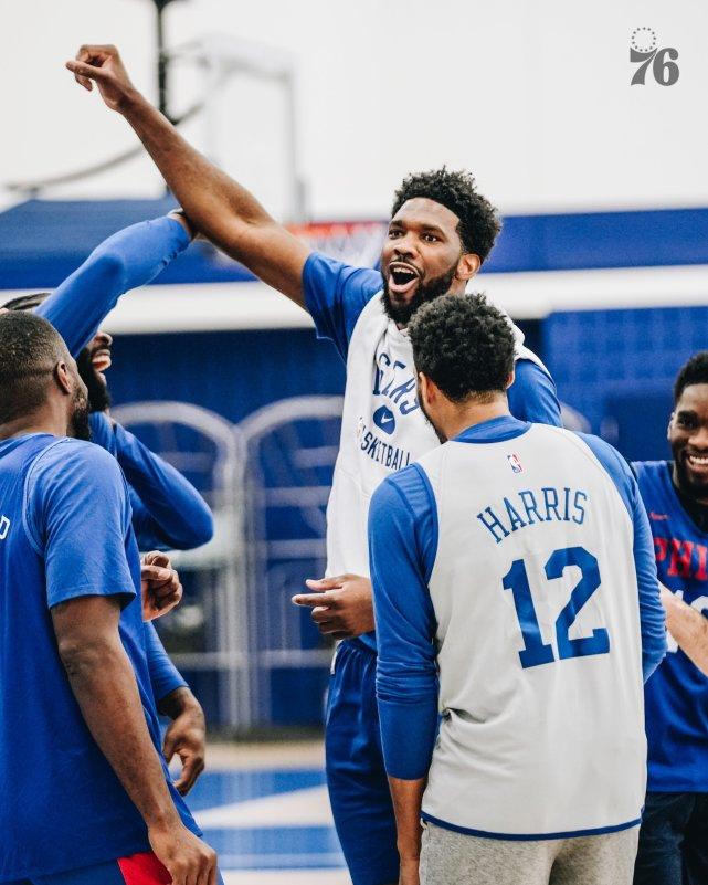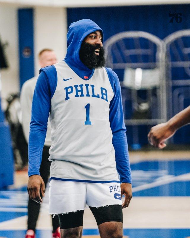 哈登备战篮网一幕曝光!76人全队笑容满面 球迷致敬西蒙斯太损了