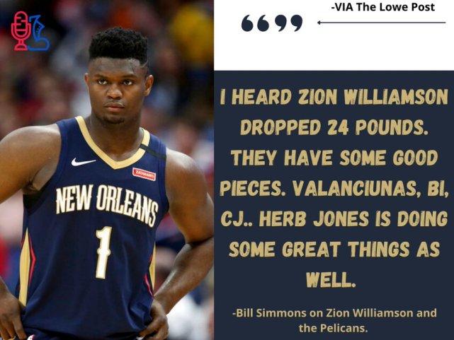 来源:JRS直播03-09 16:14JRS直播03月09日讯 ,据NBA名嘴Bill Simmons在播客节目上爆料,锡安的体重下降了不少。“我听说他减了24磅(约11公斤),他们(鹈鹕)有一些不错的拼图。瓦兰丘纳斯、英格拉姆和麦科勒姆,赫伯-琼斯也很不错。”看来,Bill Simmons挺看好鹈鹕的未来。
