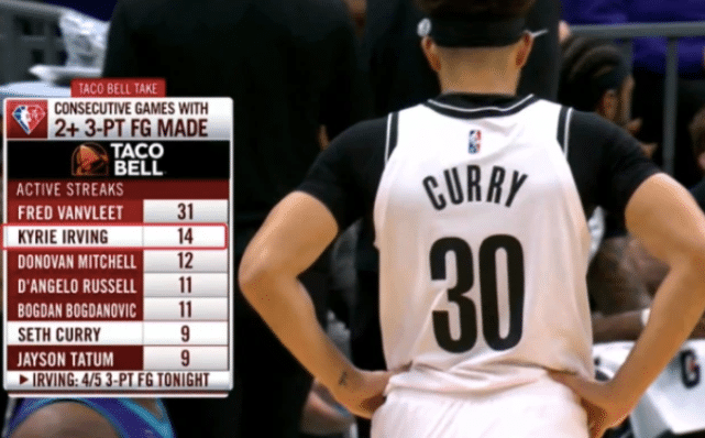 本场比赛,欧文连刷多项神迹——