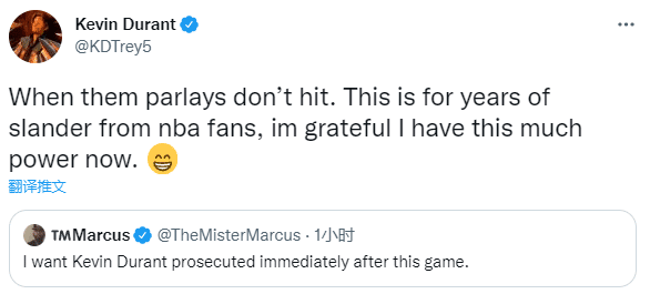 篮网赢球赛后,有球迷发推表示:我希望杜兰特本场比赛赛后立即被起诉。