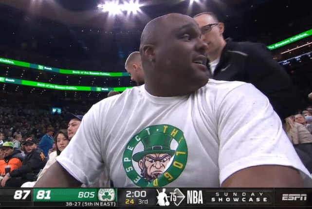 格伦-戴维斯身穿一件印有“尊重LOGO”的凯尔特人T恤前来观战,去年,他曾对欧文脚踩凯尔特人LOGO一事表达不满,并在欧文脚踝受伤后表示:“欧文踩凯尔特人队标时,用的就是这只脚”。他的言论引起很大的争议。