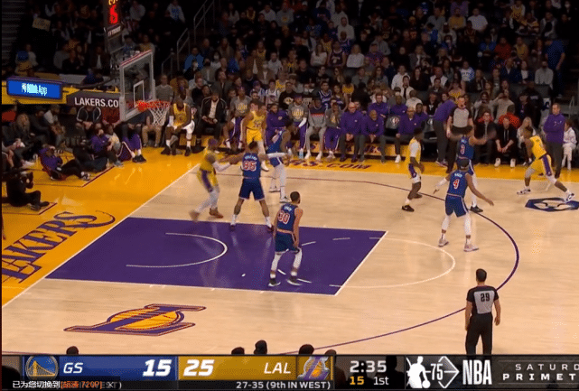 湖人首节领先勇士7分!詹姆斯单节13+4!库里8中3