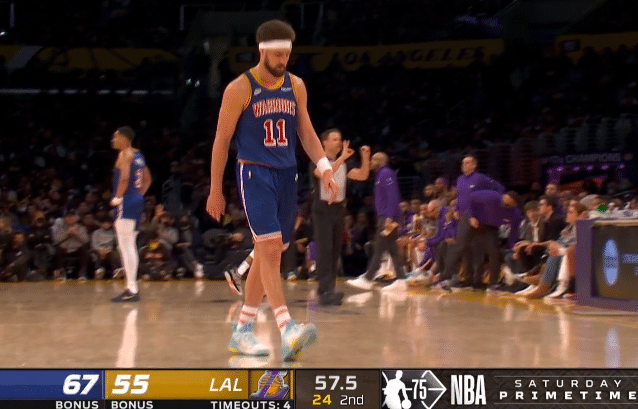 此前汤普森因生病连续缺席了两场比赛,而今天大战湖人,汤普森联手库里首发出战,上半场进攻手感糟糕,半场7投仅4分,但3次盖帽很惊艳;勇士半场67-62领先湖人5分,库里贡献14分3篮板;勇士一度反超两位数,湖人依靠詹姆斯保持悬念。