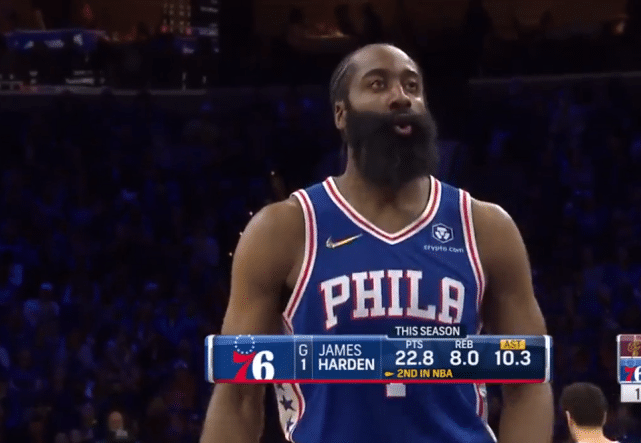 比赛开始,恩比德先是命中中投,随后哈里斯对抗抛投得手,恩比德前场板造犯规两罚全中,马克西首次出手三分也是稳稳投进,紧接着哈里斯也在快攻中完成拉杆上篮。但哈登进攻端打得完全没有侵略性,5分钟竟然没有一次出手!