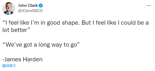 在今天76人训练中,哈登的状态很好,训练之后哈登接受采访,谈到自己的身体状态时,哈登表示:我现在觉得我的身材保持的不错,但我觉得我可以做得更好,我们还有很长的路要走。