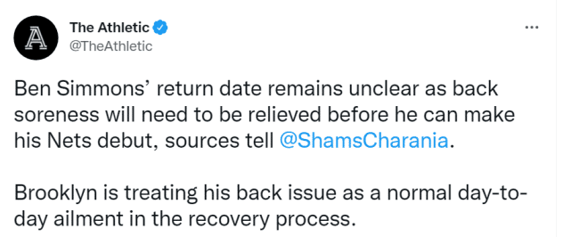 曝西蒙斯遭遇背部酸痛!首秀时间或再推迟 篮网将他放入每日观察