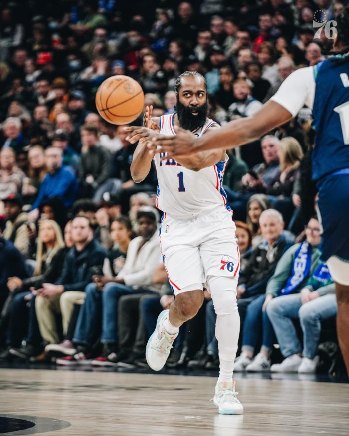 哈登三队首秀25+12创纪录,历史第一!76人官方高呼恐怖时刻