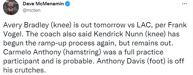 湖人两大利好!浓眉脱拐行走甜瓜或复出,沃帅定目标冲击西部前六