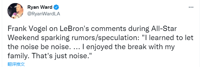 来源:JRS直播02-25 15:29JRS直播02月25日讯 ,谈到关于全明星周末,詹姆斯的言论引发的流言和猜测,沃格尔表示:我学会了让噪音成为噪音,我享受与家人在一起休息。那仅仅只是噪音。