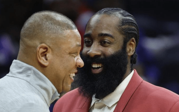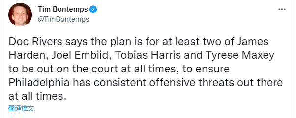 训练结束后,76人主帅谈到哈登加盟后球队阵容安排时,里弗斯表示他的比赛计划是哈登、恩比德、托比亚斯-哈里斯和马克西4人中至少2人留在场上,以确保76人在进攻端保持火力。
