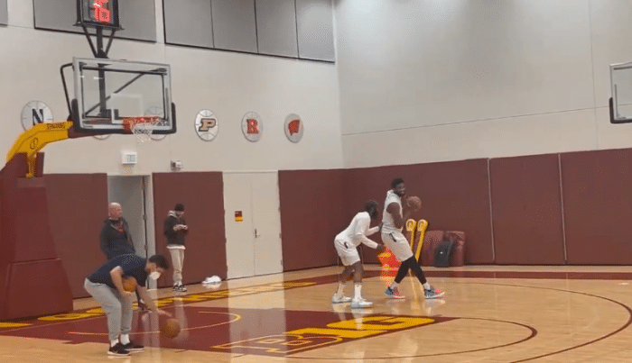 76人在明尼苏达训练备战森林狼,全队训练之后,哈登和恩比德进行一对一单挑,很明显两人打得很开心,尤其是恩比德撞开哈登并且中投得手后,他俩都咧嘴大笑,现场氛围很好。