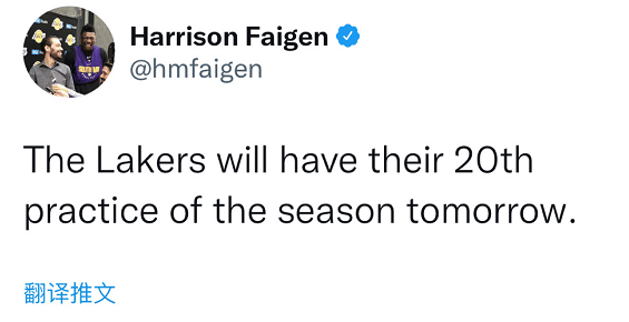 根据湖人记者Harrison Faigen的报道显示,明天湖人将进行本赛季的第20次训练,备战接下来对阵快船、鹈鹕和独行侠的比赛。目前的湖人战绩为27胜31负,在西部位列第9,对阵同城死敌也是主要竞争对手的快船,对于湖人来说至关重要。