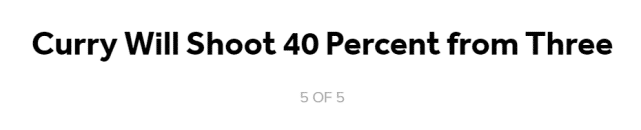 若是以往赛季,库里三分命中率达到四成,基本没有难度。不过,本赛季至今,库里三分命中率是37.9%,暂时排在联盟第55位。美媒认为,剩下23场比赛,库里全勤的情况下保持45%的三分命中率,就有可能将自己本赛季的三分命中率提升到40%以上。库里全明星正赛的疯狂手感(三分27中16),会不会在余下赛程里呈现?让我们拭目以待。