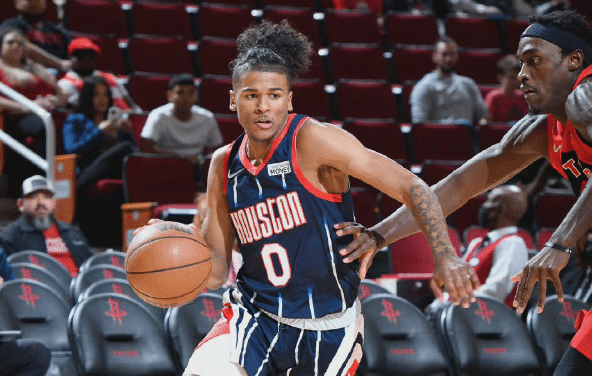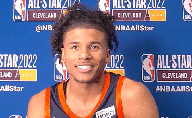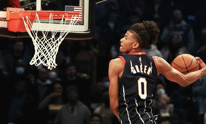不过杰伦-格林的天赋和潜力也是有目共睹的,他的身体素质相当出色,这点从全明星新秀挑战赛期间,接到队友开出的边线球直接起飞暴扣,就可以看出来。同时当杰伦-格林在比赛中找到手感的时候,他可以单场投进8记三分球,表现炸裂。