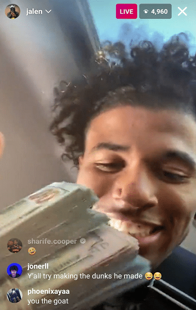 火箭榜眼开直播,炫富!手拿大沓现金笑开花,詹皇长子互动