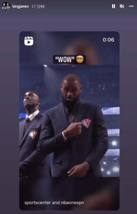 在拍摄75大球星合影时,他们站在一起开怀闲聊,在大合影中,詹姆斯、安东尼、韦德和保罗都是站在最后一排;詹姆斯还在Ins上晒出自己站在合影舞台上,用手指着NBA75周年logo ,并且仰天咆哮,这便是他入选75大球星的心情。