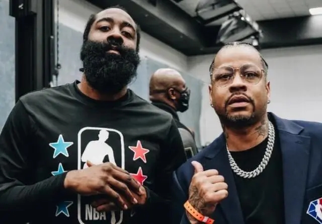 首先最吸引人的就是大胡子哈登和艾弗森的同框,不得不说这两位单拿出来在当打之年都是流量与话题的保证。如今哈登成功入住费城,作为数字人历史上可以说是最伟大的球星艾弗森也是给足了登哥面子。两人分别代表着数字人过去的辉煌与当下的状态,虽然艾弗森没能帮助数字人夺冠,但是作为东家人肯定是给予了哈登满满的期待。