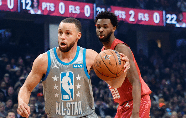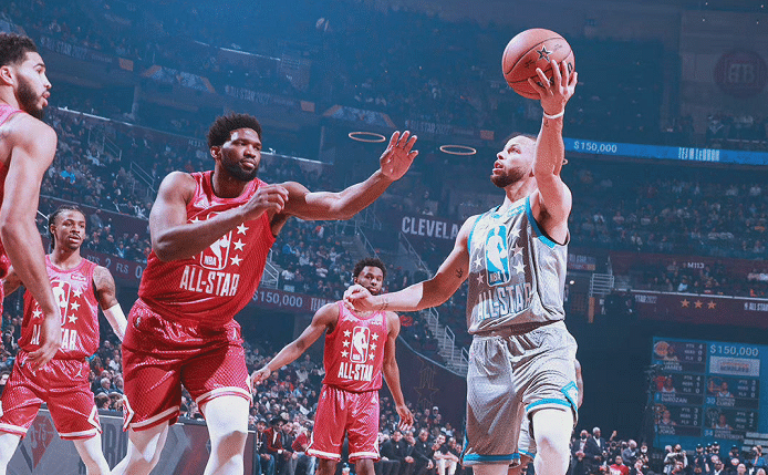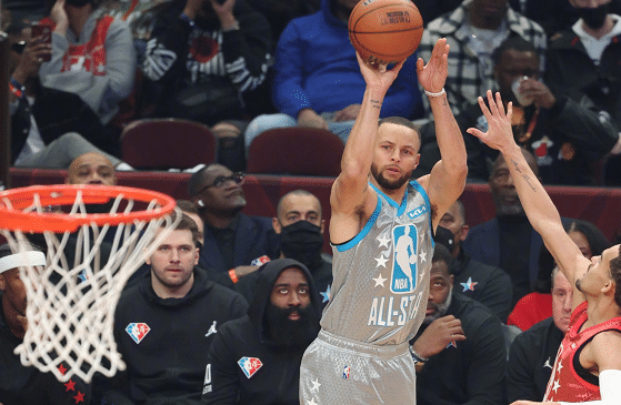 今天库里的手感也确实非常好,半场就轰进了8记三分球,11中8,要知道NBA全明星历史上最高的是9记三分球,库里完成超越已经问题不大。