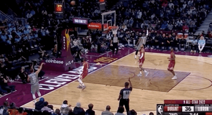 在第二节最后阶段,詹姆斯的长传球找到底角的库里,后者直接出手三分球命中,值得一提的是在库里出手之前,詹姆斯就已经开始提前庆祝了,很显然詹皇对于库里的三分球还是很有自信的,这一幕也堪称经典,两大NBA顶级巨星的连线,而且还有提前庆祝,确实很棒。