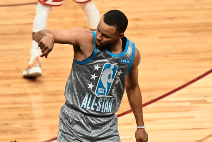第二节,杜兰特队率先加强防守,一波攻势反超比分,詹姆斯队首发重新上场,老詹再次暴扣以及接约基奇助攻完成空接暴扣,此节库里手感炸裂,单节投进6记三分独砍18分,看到库里手感滚烫,老詹助攻为库里传球,半场大战詹姆斯队93-94落后1分。