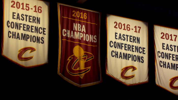 詹姆斯是最后一个亮相的,骑士主场瞬间沸腾,面对全场球迷的欢呼和呐喊,詹姆斯振臂欢呼,仰天长啸并且咧嘴大笑,开心之情溢于言表;期间镜头还给到挂在球馆上空的总冠军旗帜,这是詹姆斯在2016年带队逆转勇士拿到的,这是骑士队史唯一一座总冠军。