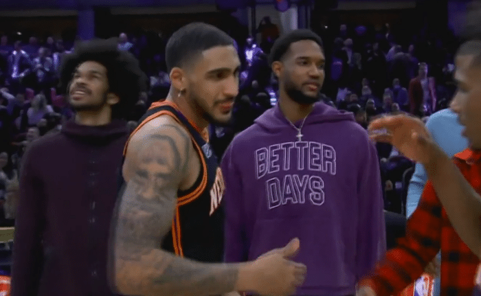 科尔-安东尼先上场,他从包里拿出一双靴子,来到场边更换,老安东尼在篮下托举着球,安东尼从父亲手里抓过球,左手的大风车抡扣,前面失误了几次影响观感,安德森跃过维金斯单臂的小风车轮扣,托平跨步飞过好友,背后换手暴扣,杰伦-格林连续多次尝试失误,最终来了个简单的大风车扣篮,现场的观众气氛也是一度跌落到了谷底,现场响起了嘘声。
