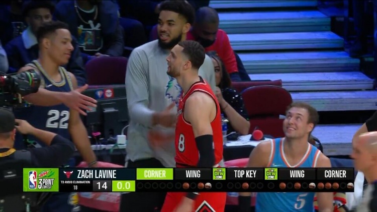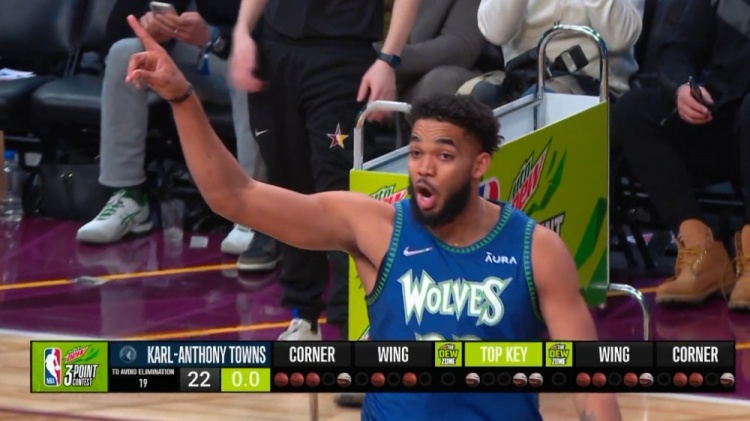 第六个出场的是唐斯,第一个点投进3球,两个超远全部偏出,但最后一车投进4球,共拿到22分,从而将麦科勒姆淘汰,提前出局。