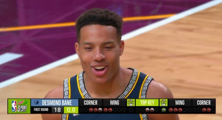 第一个出场的是戴斯蒙德-贝恩,第一个点只投入1球,第二个点进入4球,两个超远2投1中,最后连进三球,共得到18分。