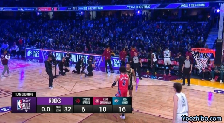 率先上场的是菜鸟队,基迪贡献16分、康宁汉姆贡献10分,巴恩斯贡献6分,菜鸟队总分32分。
