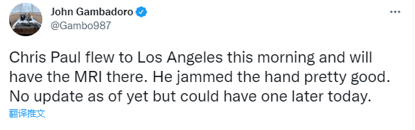 太阳赢球赛后,布克透露他在更衣室见到了保罗,并说保罗的伤势无碍,这不会影响他参加全明星赛;保罗曾在2012遭遇右拇指韧带撕裂并接受手术治疗;2017年遭遇左拇指韧带撕裂,接受手术并因伤连续缺席14场比赛。