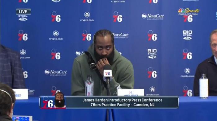 而之后主帅里弗斯接受采访透漏在今日的投篮训练结束后,哈登主动要求与第二、第三阵容的球员一起进行了加练,他想尽快融入球队。哈登在接受采访时也回应里弗斯,称赞他是冠军教练,特别愿意接受他的领导!另外他还表示76人球迷是最好的,在自己选择离开火箭时首选就是76人(但没发生)总之说了很多的场面话!