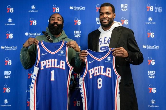 开心!哈登与恩比德探讨后撤步走步问题,采访:76人球员有正确心态!