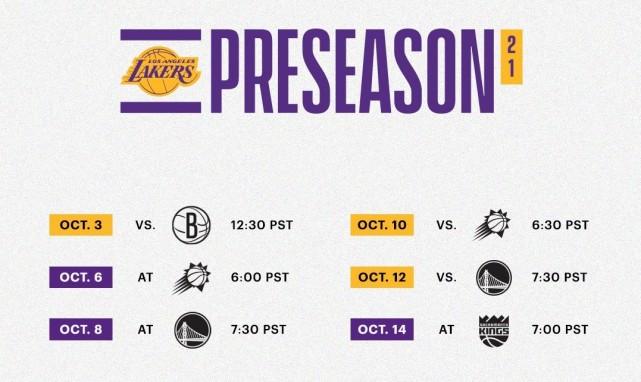 湖人官宣季前赛赛程!10月4日首战篮网,将与太阳勇士两次交手