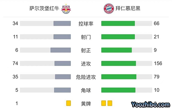 全场比赛结束,最终拜仁1-1萨尔茨堡红牛。