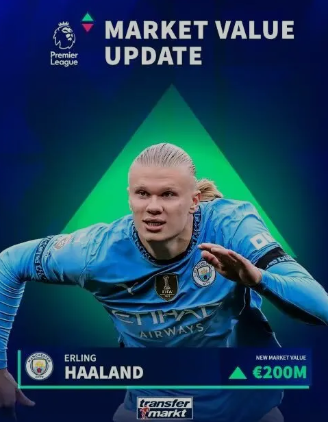 JRS直播讯 德转在今日更新英超球员身价,哈兰德升至2亿欧,也追平了姆巴佩在2018年创下的历史最高身价。德转历史最高身价榜:欧元