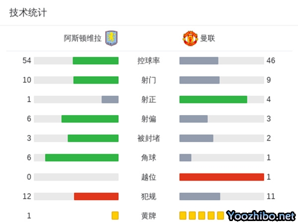 曼联0-0维拉两队21射0进球 B费任意球中框马奎尔伤退