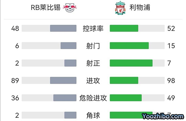 全场比赛结束,利物浦5-0莱比锡红牛!