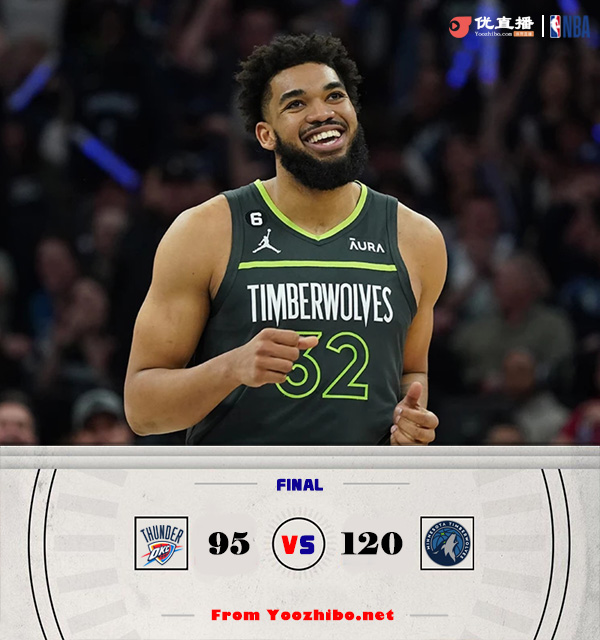 JRS直播4月15日讯 NBA附加赛今日迎来最后一个名额的争夺,常规赛排名西部第8的森林狼对阵第10的雷霆。森林狼上一场惨遭湖人逆转未能抓住晋级机会,雷霆则力克鹈鹕保留争夺季后赛名额的机会。常规赛对决方面两支球队有过4次交手,森林狼赢下其中的3场比赛。上半场争夺森林狼明显做了针对性的部署,他们的高压防守直接锁死了雷霆的两大发动机亚历山大和基迪,两人半场总计18投仅3中导致球队陷入被动。而进攻森林狼则以双状元为首不断强攻,爱德华兹一改上一场糟糕的发挥,他和唐斯联手半场拿下26分为球队打开局面,森林狼在第二节初期送出10-0的攻势成功拉开比分奠定半场10分领先。休息归来亚历山大和基迪依旧找不到准心,雷霆打完三节命中率一直在35%上下徘徊,而森林狼这边不仅多点开花效率还高,第四节初森林狼送出14-2的攻势彻底击垮雷霆防线并将分差扩大至29分杀死比赛。最终,森林狼主场击退雷霆拿到最后一张季后赛门票,他们的首轮对手将是西部第一的掘金。