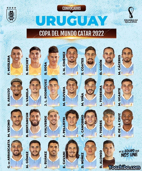 2022卡塔尔世界杯乌拉圭队26人大名单一览