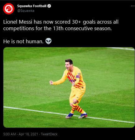 JRS直播讯 北京时间今天凌晨的国王杯决赛中,巴萨对阵毕尔巴鄂竞技竞技,梅西完成了梅开二度,本赛季的进球数提升到了31粒。这已经是梅西连续13个赛季进球超过30个,五大联赛中也仅仅只有梅西完成了这一壮举。