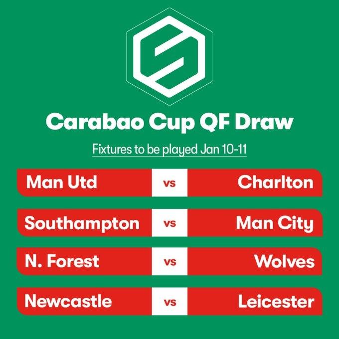 JRS直播12月23日讯 今天凌晨,联赛杯8强对阵抽签结束,曼联对阵查尔顿竞技,曼城将战南安普顿。